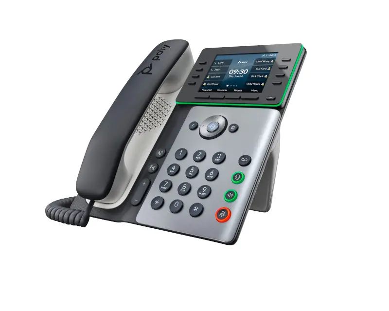 Bu çok yönlü telefon, parlak 3,5 inç renkli IPS LCD ekranlıdır ve hatları, işlevleri, kişileri ve hızlı aramaları görüntüler. Dahası, Poly Edge E300 Serisi üretkenliği artırmak için 32 adede kadar hattın yönetilebileceği şekilde tasarlanmıştır.